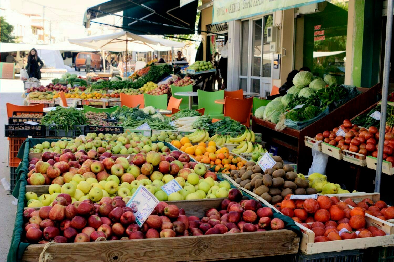 Der Markt ist ein Zeugnis von Kretas reicher landwirtschaftlicher Tradition und bietet reichlich lokal angebautes Obst und Gemüse, wie saftige Tomaten, leuchtende Paprika und süße Melonen. Außerdem werden Oliven, Olivenöl, Honig, Käse und andere traditionelle kretische Produkte angeboten.