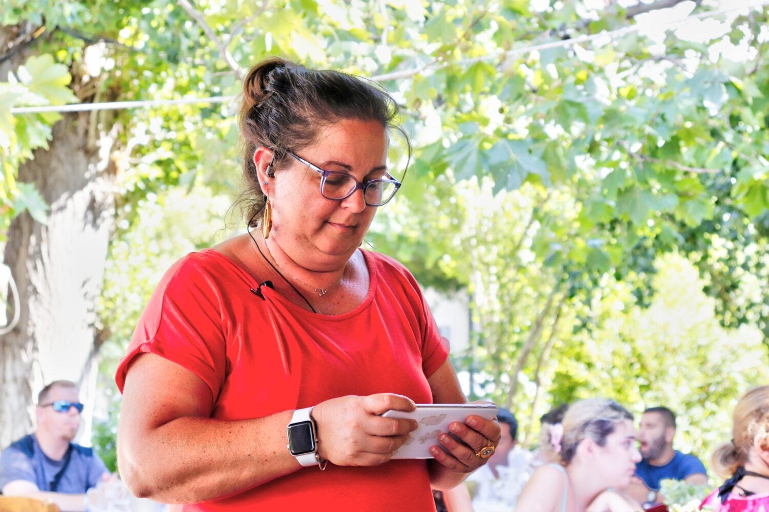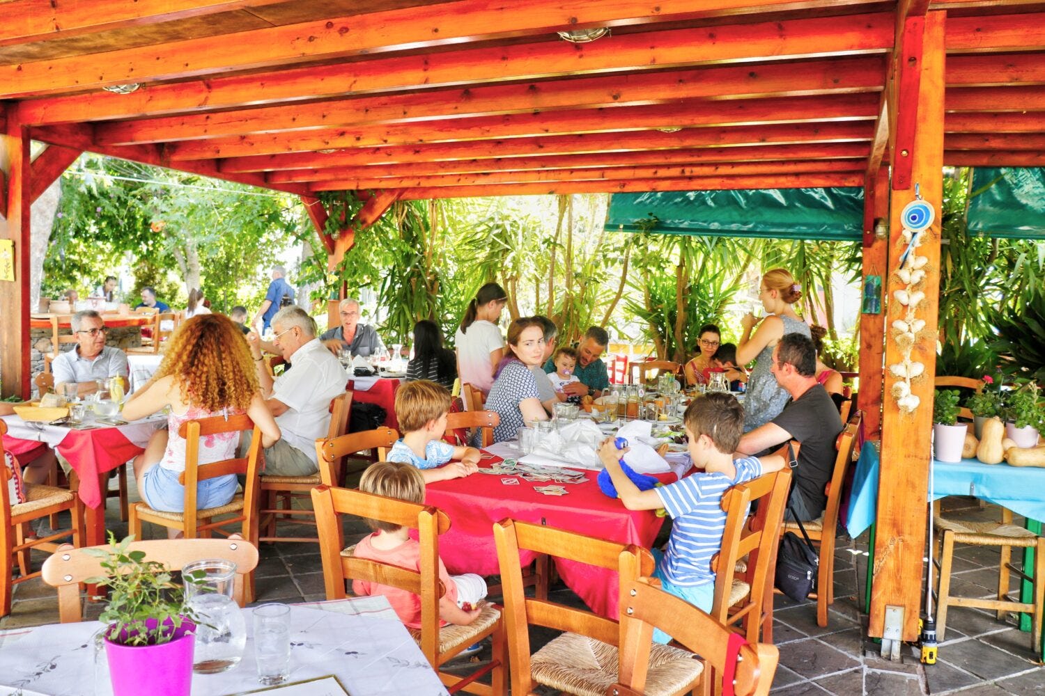 Und es wird von einer amerikanisch-griechischen Frau namens Samantha geführt, die aus Amerika zurückkehrte, um sich um ihre Großmutter zu kümmern, ihren Mann heiratete und Kinder bekam und diese schöne und effiziente Taverne betreibt.