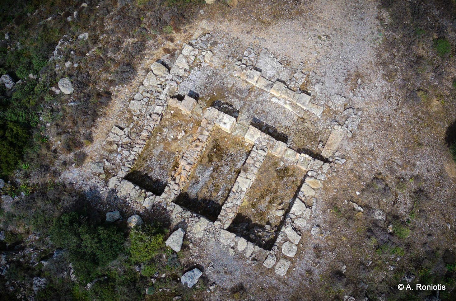 An der Südseite verliefen drei parallele, schmale Räume. Keiner dieser Räume war direkt mit einem anderen verbunden. Stattdessen öffneten sich alle drei nach Norden zu einem langen Korridor, der sich über die gesamte Breite des Gebäudes erstreckte. Dieser Korridor diente als eine Art Vorhalle oder Halle. Jenseits des Gebäudes lag das Temenos, der heilige Bezirk, der einst von einer niedrigen Mauer und möglicherweise von einer Hecke oder einem Zaun umgeben gewesen sein dürfte.