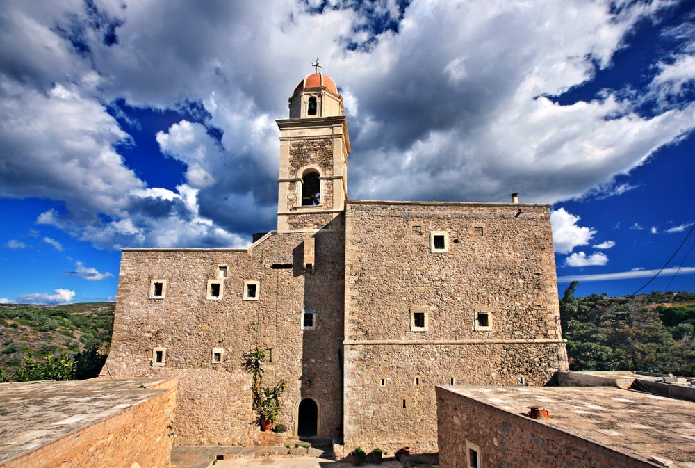 Der äußerste Osten Kretas war schon immer eine Schwelle. Man spürt es, wenn man dorthin fährt. Das Land streckt sich nach außen, zu den Seewegen, die seit Jahrtausenden Händler, Pilger, Piraten, Soldaten und Flüchtlinge transportierten. Es ist ein Ort, an dem die Insel gleichzeitig nach innen und nach außen blickt. Gerade in früheren Jahrhunderten war dieser Blick nach außen nicht immer ungefährlich. Küstenüberfälle gehörten in vielen Teilen Kretas zum Alltag, und auch der Osten war diesen Gefahren ausgesetzt. Klöster waren nicht nur spirituelle Zentren, sondern auch Lagerhäuser für Lebensmittel, Wein, Dokumente, Wertgegenstände und Kunst. Das machte sie für ihre Gemeinschaften kostbar und für jeden, der mit Waffen ankam, verlockend.