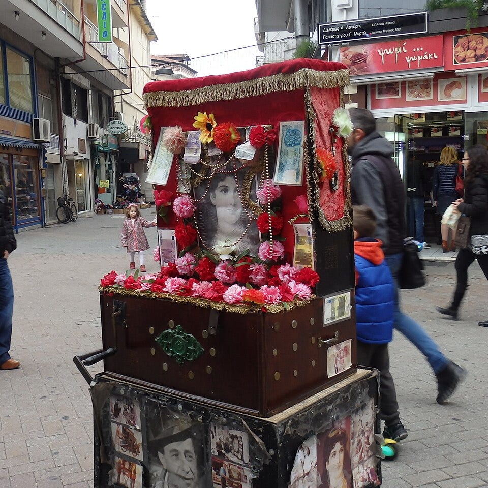 Vor Radios, vor Fernsehen, bevor man Musikaufnahmen nach Belieben abrufen konnte, war die Straße ein Ort, an dem Musik ganz konkret präsent war. Sie kam auf dem Rücken eines Mannes mit einer Klarinette. Sie erklang als Lyra und Laouto bei einer Hochzeit. Sie erklang als Gruppengesang in einem Kafeneio, wenn die Stimmung vom Plaudern zum Singen wechselte. Und sie kam auch als Maschine, die für ein paar Minuten so tun konnte, als wäre sie eine ganze Band.