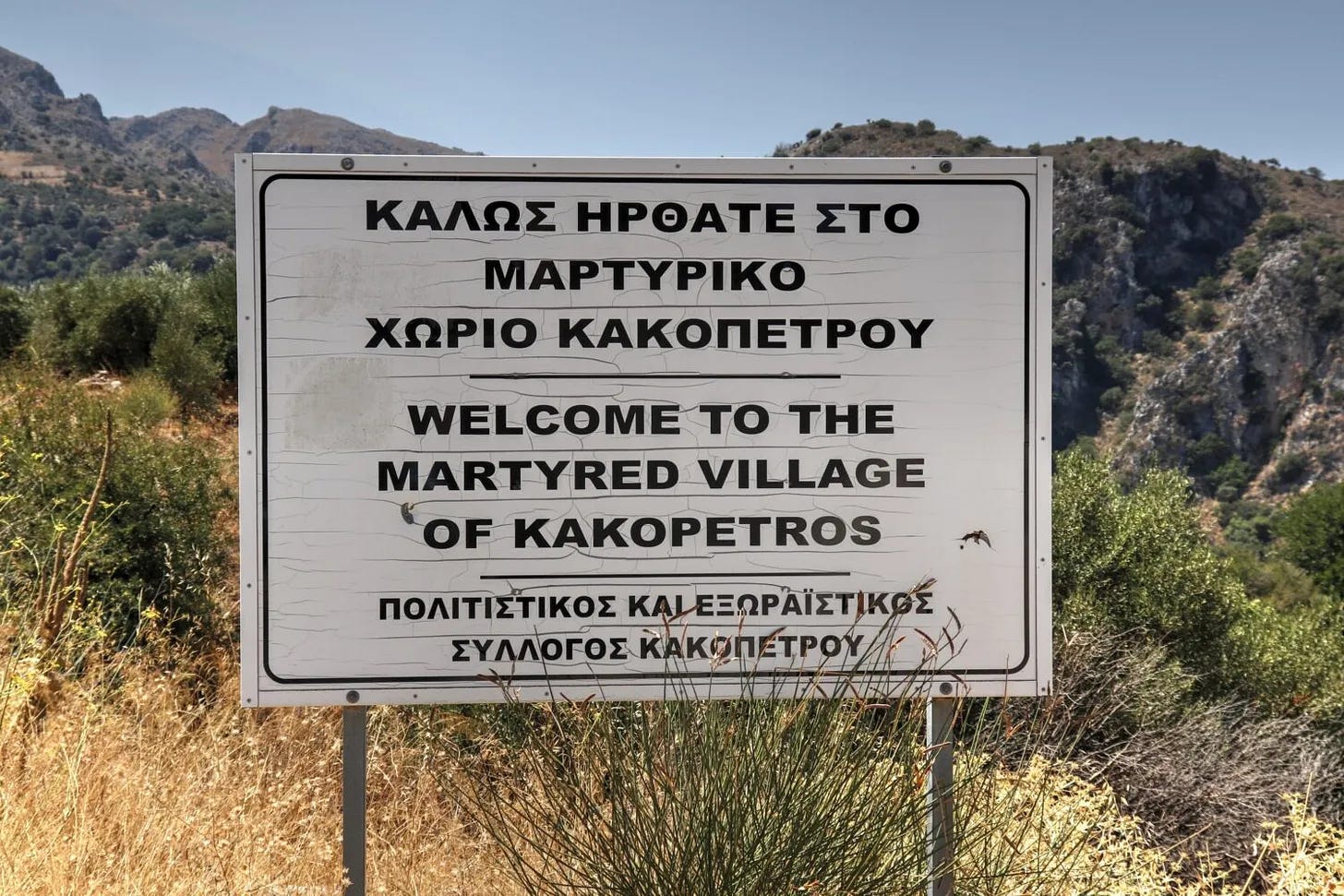 Wenn Sie schon einmal Zeit auf Kreta verbracht haben, werden Sie diese braunen oder blauen Schilder gesehen haben, die still und leise an Kurven und Hügelkämmen auftauchen. „Märtyrerdorf“. Kein Tamtam, keine Erklärung, nur ein einziges Wort, das auf etwas sehr Dunkles hinter den sonnigen Hügeln und der fröhlichen Kafeneia hindeutet