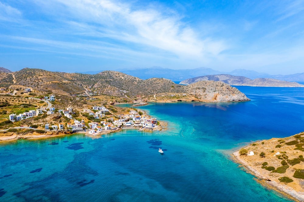 Man kommt an, und das Erste, was einem auffällt, ist das Wasser. Es wirkt oft geschützt, als hätte jemand die Hand über die Bucht gelegt, um sie ruhig zu halten. Gegenüber dem Dorf liegt eine flache Insel, so nah, dass sie sich wie ein Teil der Siedlung anfühlt. Diese Insel ist der Schlüssel zu allem. Sie durchbricht das Meer. Sie schafft einen natürlichen Hafen. Sie macht einen Küstenabschnitt zu einem Anlegeplatz. Auf Kreta ist das niemals bloß Kulisse. Es ist Sinn und Zweck ist Geschichte.