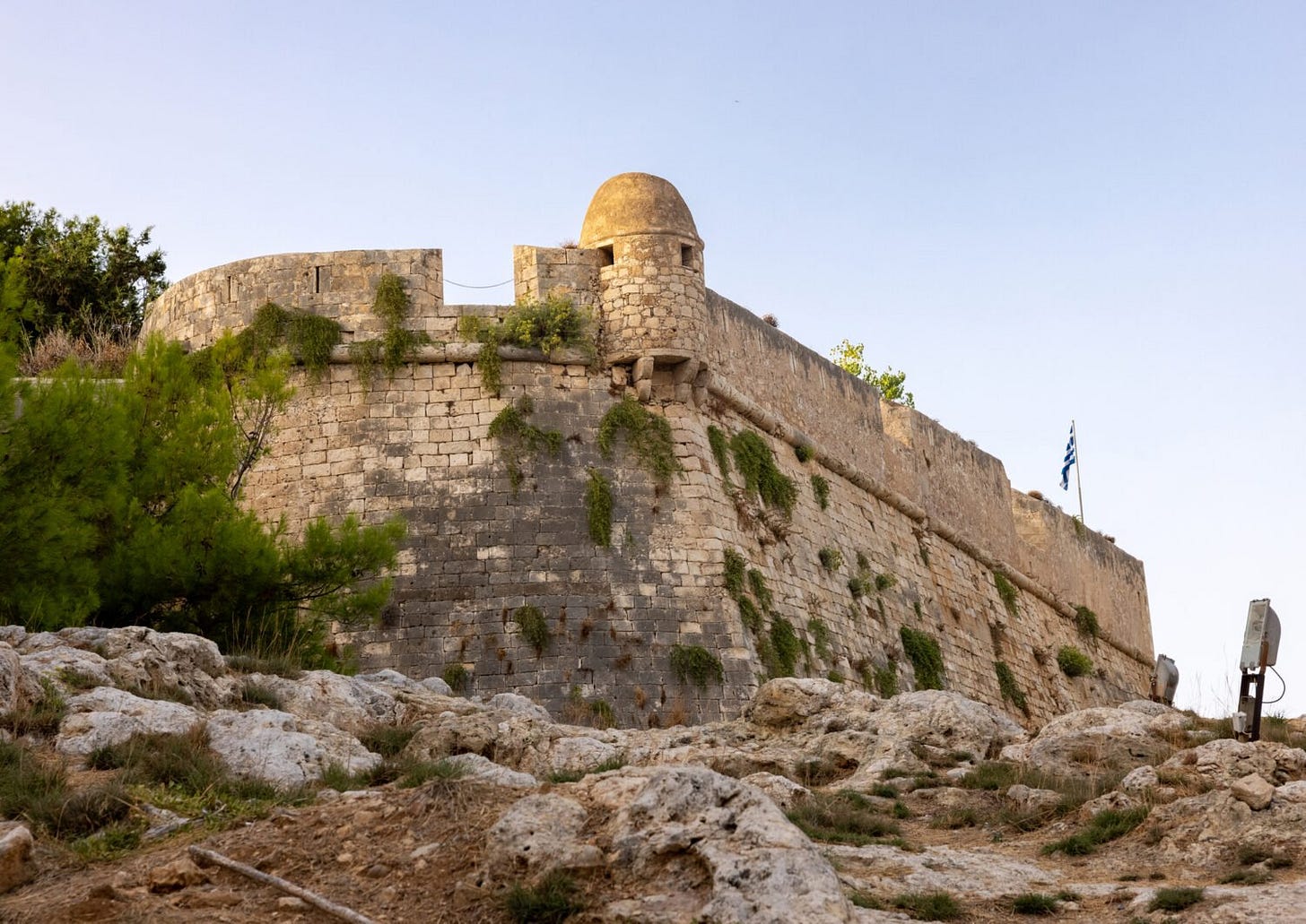 In Rethymno ist ein Spaziergang zur Fortezza ein kurzer Kurs in militärischem Pragmatismus. Die dicken Mauern und das niedrige Profil machen sofort Sinn, sobald man darauf steht. Die Bastionen legen Schussfelder frei. Die Stadt darunter breitet sich in einem hübschen Gewirr von Gassen und Höfen aus. Man erkennt Häuser mit Stürzen im altvenezianischen Stil. Eine Tür trägt ein Wappen. Ein Fenster behält seinen Steinrahmen aus dem 16. Jahrhundert, auch wenn die Fensterläden letzte Woche ausgetauscht wurden.